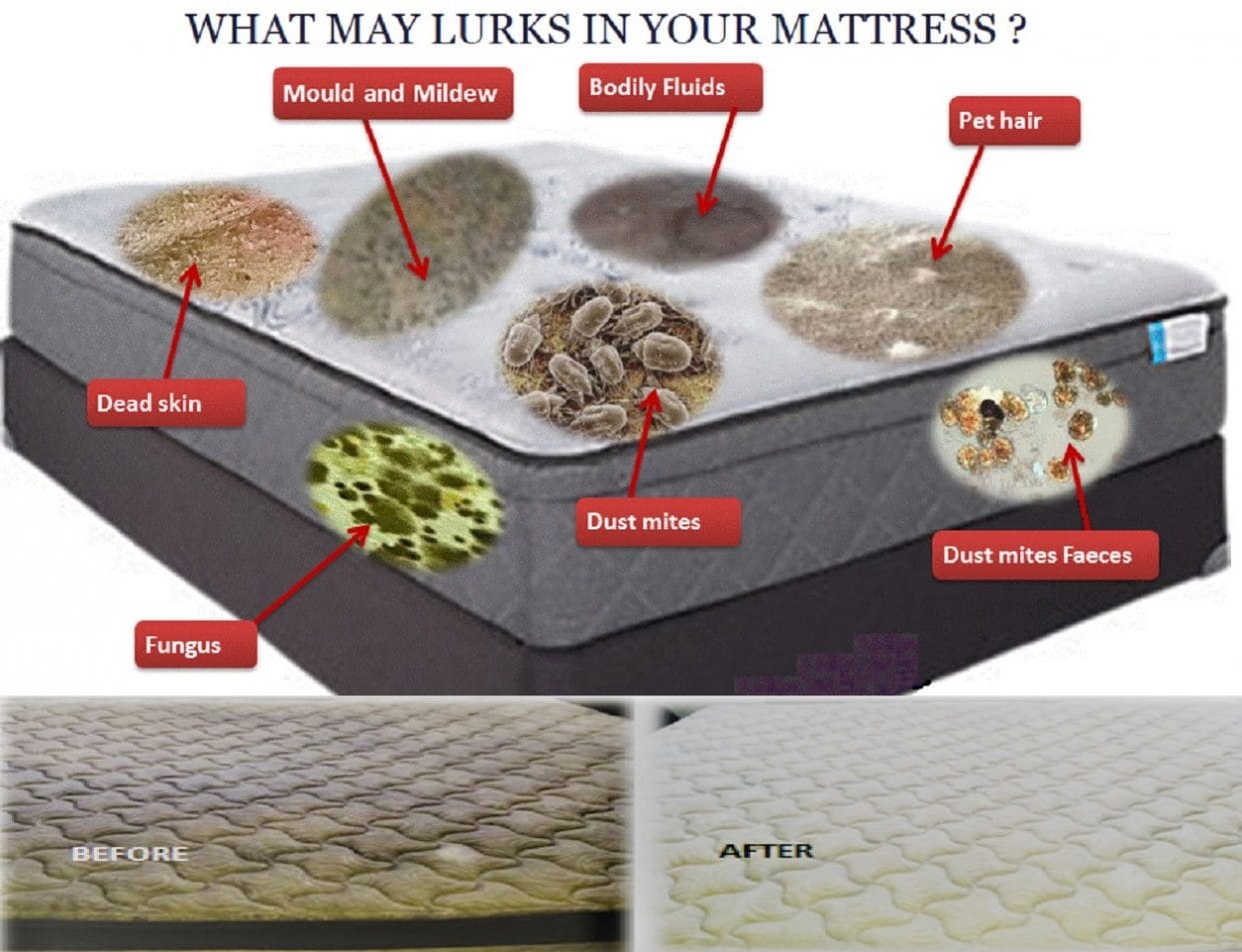 Millions of microscopic dust mites are living and breeding in our Mattress. Unfortunately, all these organisms are microscopic and hence not visible to the naked eye. These germs, bacteria, viruses, bed bugs, mould spores and more, are the main causes for various ALLERGIES, ASTHMA, HEYFEVER, SINUSES, HEADACHES, POOR SLEEP.